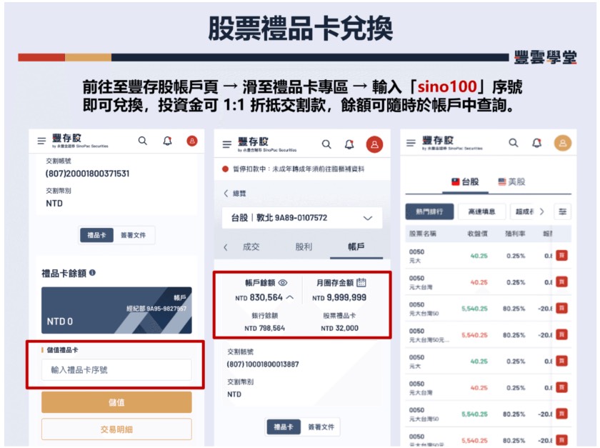 5,10/1~12/31活動期間 共 限量5000名,發完為止 開戶後之兌換位置為 豐存股 網頁